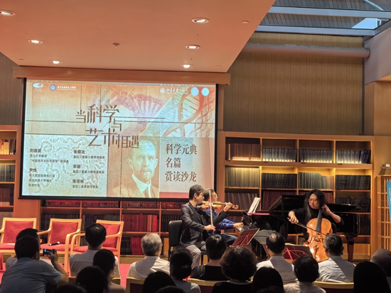 隨著燈光的調(diào)暗,一段優(yōu)美的旋律響起,舞臺(tái)上的“基因三重奏”組合開(kāi)始演奏《莫扎特主題華麗變奏曲》,開(kāi)啟一段科學(xué)與藝術(shù)的邂逅。