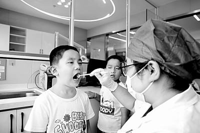 浙江嘉興經(jīng)開區(qū)組織兒童牙齒義診活動(dòng)走進(jìn)嘉北街道暑托班。張娟攝/光明圖片