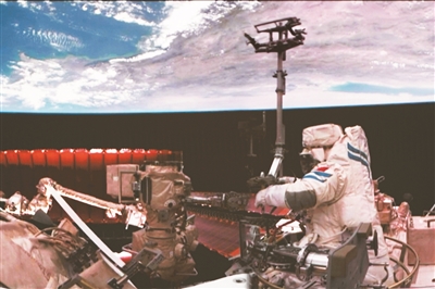 神舟十八號航天員李聰在空間站組合體艙外作業(yè)。新華社發(fā)