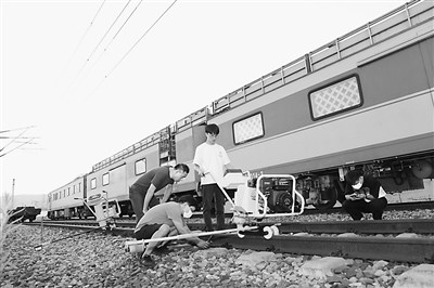 重慶電子工程職業(yè)學院師生正在使用軌枕螺栓高精度智能檢測與檢修設(shè)備進行現(xiàn)場勘測。受訪者供圖