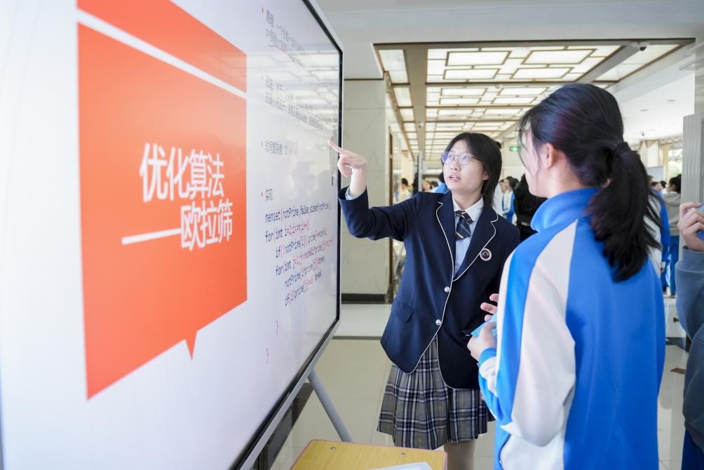 新華網(wǎng)北京3月17日電 國際數(shù)學(xué)日當(dāng)天,北京市海淀區(qū)教師進修學(xué)校附屬實驗學(xué)校開展了主題為“數(shù)海揚帆智引航,數(shù)演萬物智創(chuàng)生”的數(shù)學(xué)節(jié)活動,共設(shè)置了“數(shù)海暢游”“數(shù)解科技“數(shù)論古今”“數(shù)模筑夢”“數(shù)韻流光”五大主題板塊。