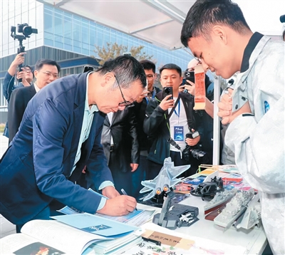 雙手捧著自己和小伙伴共同創(chuàng)作的科幻小說,一遍遍看著劉慈欣剛剛簽下的名字,高一學(xué)生陸逸航難掩激動。