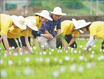 師生在水稻試驗田上課。西南大學(xué)供圖