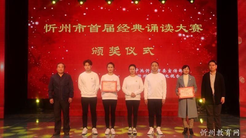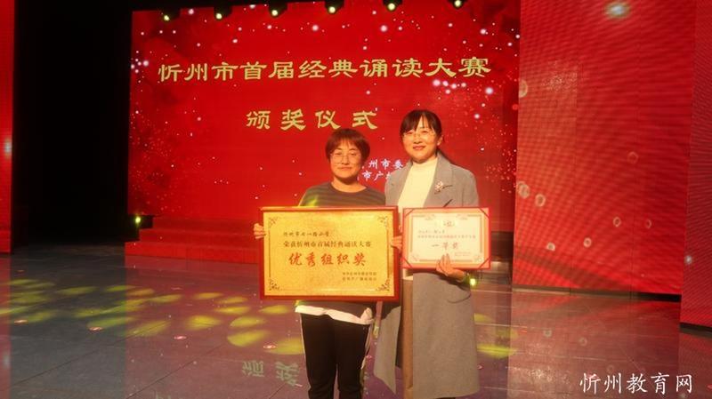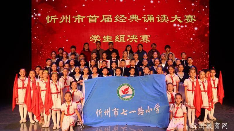 “共讀中華經(jīng)典,聆聽古詩書韻”。由中共忻州市委宣傳部主辦,忻州市廣播電視臺承辦 “忻州市首屆經(jīng)典誦讀大賽”經(jīng)過初賽海選和緊張激烈的復(fù)賽和決賽,于11月1日落下帷幕。本次比賽學生組共有四十一個參賽節(jié)目,經(jīng)過角逐,有十個節(jié)目進入了決賽。決賽采取評委當場亮分,現(xiàn)場點評的方式,最終評出一等獎一名,二等獎二名,三等獎三名,最佳風采獎四名。七一路小學以98.51分的成績奪冠,榮獲學生組一等獎。同時學校也榮獲優(yōu)秀組織獎。