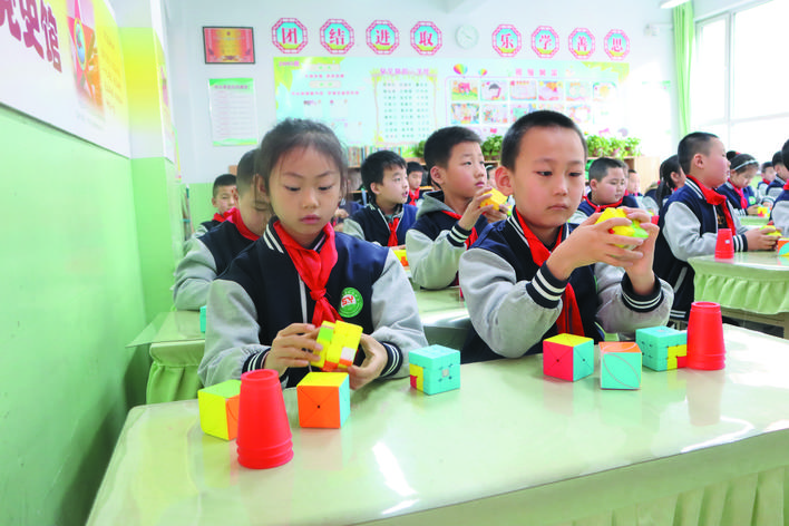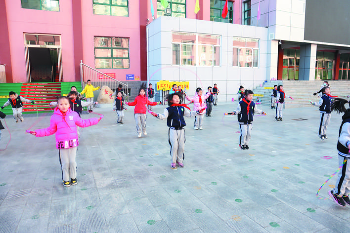 冬日暖陽下,忻州市實驗小學校園里一派生機勃勃的景象。武術訓練場上,孩子們正在認真扎馬步、練拳術,一招一式打得虎虎生威,眼睛里閃爍著堅毅和自信的光芒。百人腰鼓隊排著整齊的隊伍,伴著音樂的節(jié)奏不停變換著步伐,鼓槌上的紅綢子上下舞動,看得人眼花繚亂。花式籃球挑戰(zhàn)籃球極限,展示籃球技術和表演的完美結合?;犹K中,孩子們在環(huán)擺的繩索中做著各種跳躍動作……操場上,熱火朝天,教學樓里,每一間教室里都散發(fā)著濃濃的趣味性?!耙黄惨晦?,書寫堂堂正正中國字”“編程要注意邏輯關系”“三原色是哪些顏色呢?”……這是市實驗小學每周三開展的第二課堂綜合實踐活動,也是孩子們最興奮最高興的校園時光。