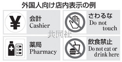 日本經(jīng)濟(jì)產(chǎn)業(yè)省出臺(tái)有關(guān)店內(nèi)標(biāo)識(shí)的指南,要求盡量使用英語、圖形符號(hào)及漢字。(共同社)