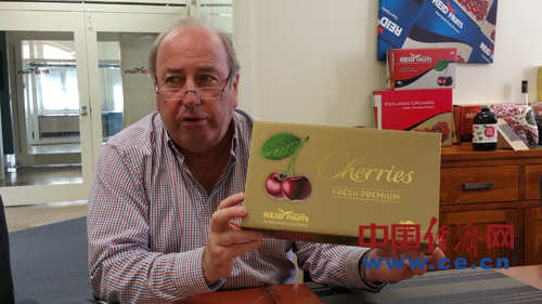 在霍巴特水果市場(chǎng)樓上一間非常普通的辦公室里,見(jiàn)到了澳大利亞最大櫻桃出口商蒂姆-里德,典型的澳洲中年人模樣,粗壯而敦厚,熱情友好。