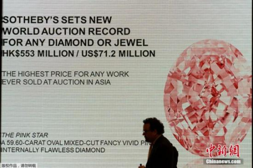 “粉紅之星”鉆石以7100萬美元成交 價(jià)格破紀(jì)錄