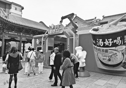 “什么!方便面也有主題店?”5月3日,山西晚報記者在鐘樓街上有了驚奇的發(fā)現(xiàn)。跟隨著腳下的指示圖標,在步行街鐘樓后廣場上,一個白象泡面工廠沉浸式主題店出現(xiàn)在眼前,巨大的方便面桶從房間里伸出,視覺沖擊力極強,吸引很多年輕人進店打卡。店內(nèi)擺放著從面片制作成面條,最終成為方便面面餅的仿真模型,以及制作方便面時工人所穿的工服。只要按要求做完打卡“任務(wù)”,還能免費獲得一桶寫有自己名字的專屬方便面。據(jù)現(xiàn)場工作人員介紹,這個泡面工廠“五一”期間每天有三四萬人光顧,“沒想到逛街還能逛到這樣有趣的體驗店,我完成了打卡任務(wù),給孩子拿了一桶寫有他名字的方便面,感覺太有趣了!”現(xiàn)場一位女士高興地說。