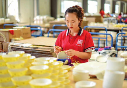 朔州市工信局副局長梅斌表示,目前,朔州日用瓷產(chǎn)業(yè)正在向全鏈條、全要素發(fā)展。窯爐機械、模具開發(fā)、釉料加工、包裝制作、創(chuàng)意設計、專業(yè)營銷、花紙生產(chǎn)、報關服務等上下游配套企業(yè)逐步發(fā)展壯大?!皬臒o到有,從少到多,配套小企業(yè)不僅拉長了朔州日用瓷的產(chǎn)業(yè)鏈,也促使朔州基本形成了較為完善的產(chǎn)業(yè)配套體系。其中,人才培養(yǎng)、會展交流、大型物流、協(xié)會聯(lián)盟等配套產(chǎn)業(yè)發(fā)展迅速?!睂λ分萏沾僧a(chǎn)業(yè)鏈的發(fā)展現(xiàn)狀,梅斌提出了自己的看法。
