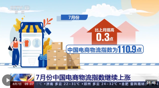 中國物流與采購聯(lián)合會今天(7日)公布了7月份中國電商物流指數(shù)。受益于供給端各項指數(shù)的穩(wěn)步上漲,中國電商物流指數(shù)較上月有所提高,繼續(xù)保持連續(xù)上漲態(tài)勢。