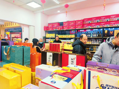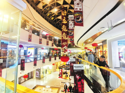 晚上6時30分,走進省城龍湖萬達廣場,遠遠的,霓虹燈閃爍,商場內(nèi)的喜慶裝飾讓人眼花繚亂,“龍運當(dāng)頭”“龍年大吉”“金龍賀歲”等祝福語隨處可見,各個商家門頭上設(shè)置的龍年掛飾為節(jié)日氛圍增色添彩,很多商品無論外形還是包裝,都巧妙地融入了龍年的獨特元素,市民們踏著歡快的新春背景音樂,挑選著年貨賀禮。