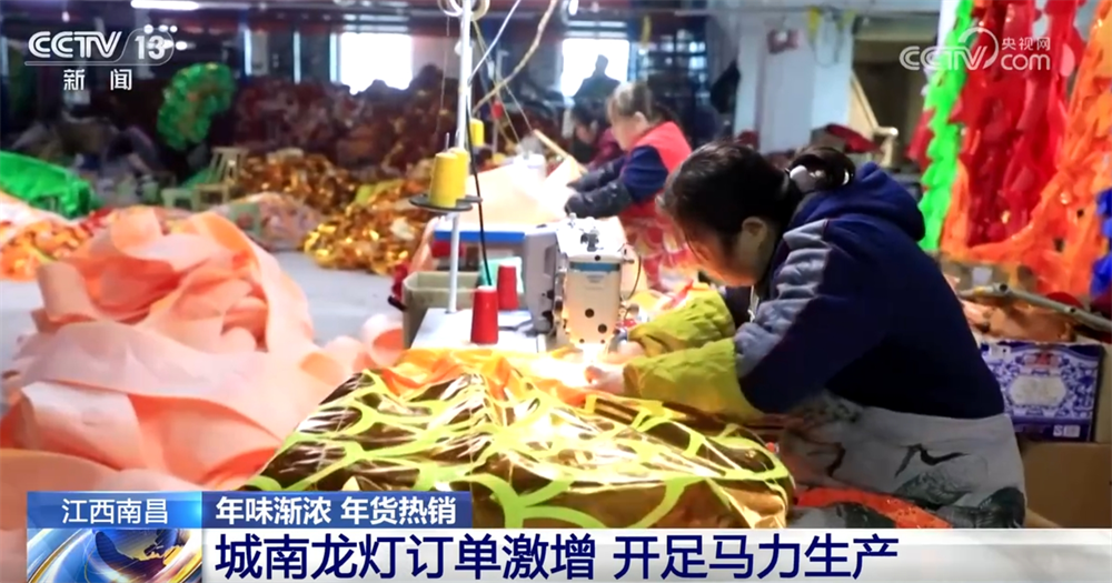江西南昌的城南龍燈有著700多年的制作歷史。春節(jié)前,當(dāng)?shù)爻悄淆垷羯a(chǎn)基地訂單激增。數(shù)百平方米的廠房?jī)?nèi),設(shè)置了龍頭、龍身、龍衣、龍尾等制作區(qū),50多名工人都在有條不紊地完成自己的工序。在發(fā)貨區(qū),師傅們忙著裝貨打包,趕在年前給來(lái)自全國(guó)和海外的訂單發(fā)貨。