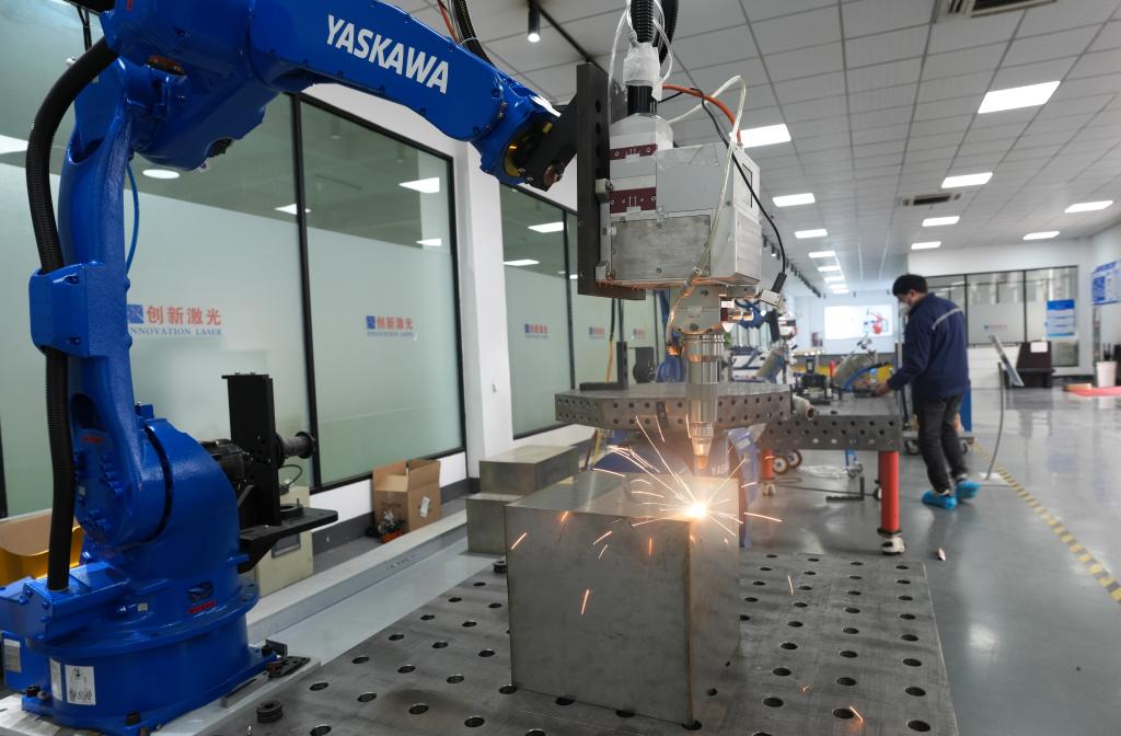 1月7日,紹興市上虞區(qū)浙江創(chuàng)新激光設備有限公司的機械臂對不銹鋼產(chǎn)品進行無縫激光焊接。 新華社照片,紹興(浙江)(2025年1月7日)新華社記者 翁忻旸 攝