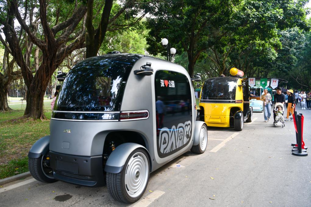 這是2024年11月11日在深圳蓮花山公園拍攝的無(wú)人駕駛觀光車(chē)、零售車(chē)。新華社記者 梁旭 攝
