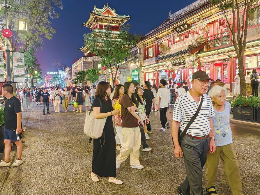 8月2日,入夜后的太原市鐘樓街燈火璀璨、熱鬧非凡,市民們來(lái)此散步休閑、購(gòu)物娛樂(lè),體驗(yàn)多元消費(fèi)業(yè)態(tài)。