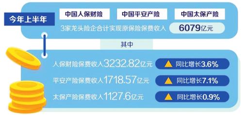2025年上半年,財產保險行業(yè)整體運行穩(wěn)健,承保質效持續(xù)改善,行業(yè)格局呈現出穩(wěn)中向好的態(tài)勢。從整體看,中國人保財險、中國平安產險、中國太保產險3家龍頭險企合計實現原保險保費收入6079億元,占據約63%的市場份額。其中,人保財險保費收入3232.82億元,同比增長3.6%;平安產險1718.57億元,同比增長7.1%;太保產險1127.6億元,同比增長0.9%。綜合成本率方面,人保財險、平安產險、太保產險分別為95.3%、95.2%和96.3%,均較去年有所下降,承保盈利水平明顯提升。