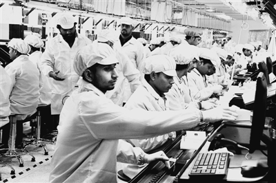 近年來(lái),印度政府出臺(tái)政策鼓勵(lì)電子產(chǎn)品本地制造,vivo手機(jī)在毗鄰新德里的諾伊達(dá)地區(qū)建立了生產(chǎn)線(xiàn)。該工廠為當(dāng)?shù)靥峁┝?000個(gè)就業(yè)崗位,促進(jìn)了當(dāng)?shù)氐慕?jīng)濟(jì)發(fā)展。圖為工人們正在生產(chǎn)線(xiàn)上作業(yè)。記者 鄒 松攝