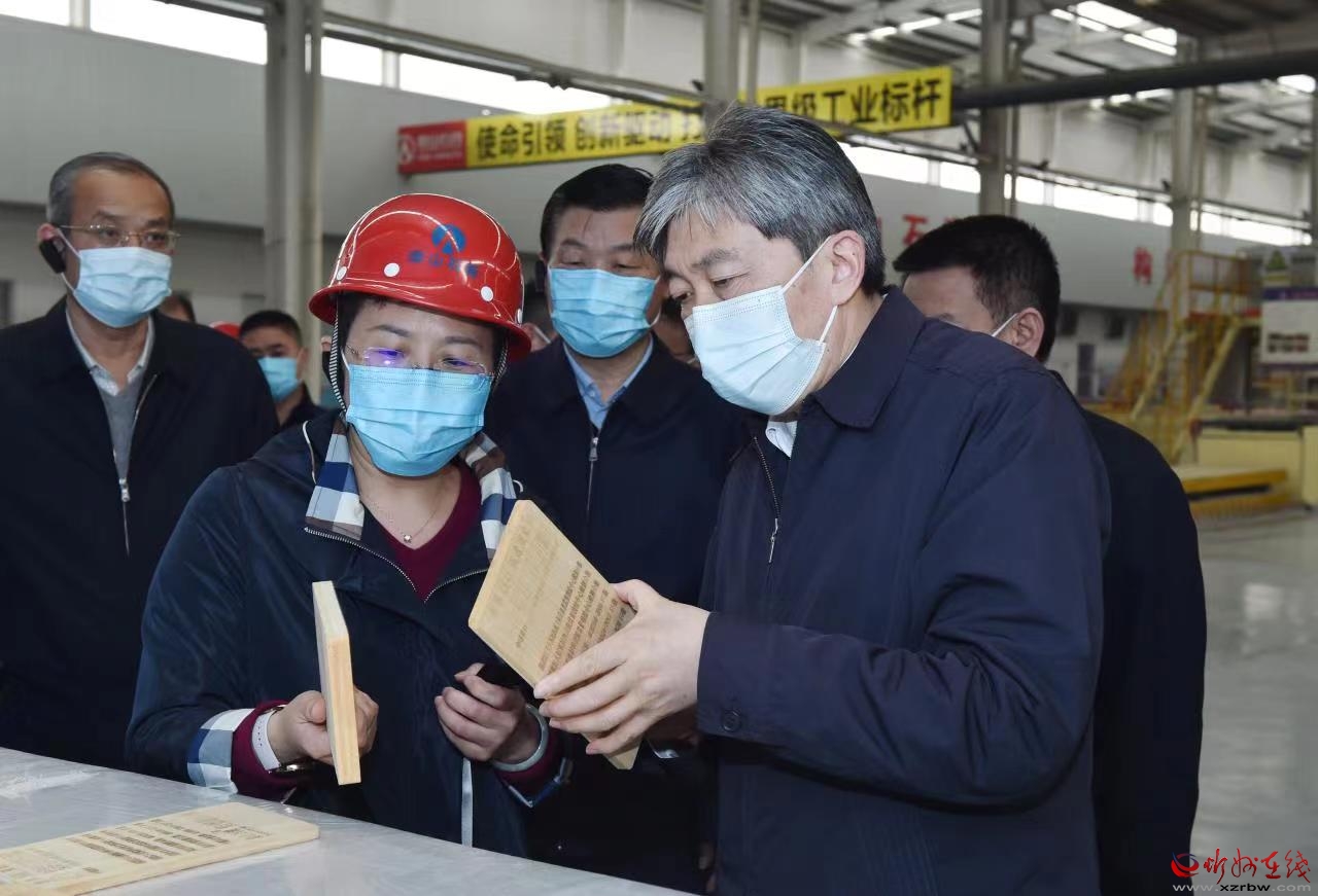 泰山石膏忻州有限公司產(chǎn)銷量均居同行業(yè)首位,被譽為中國紙面石膏板行業(yè)的領(lǐng)跑者。朱曉東深入企業(yè)車間宣講黨的二十屆二中全會和習(xí)近平總書記在全國兩會期間重要講話及全國兩會精神,聽取負(fù)責(zé)人工作匯報,詳細(xì)了解項目建設(shè)、企業(yè)生產(chǎn)經(jīng)營、產(chǎn)品研發(fā)、安全生產(chǎn)等方面的情況。他指出,要把學(xué)習(xí)貫徹黨的二十屆二中全會精神與學(xué)習(xí)宣傳貫徹黨的二十大精神結(jié)合起來,與貫徹落實全國兩會精神結(jié)合起來,在學(xué)深悟透、宣講培訓(xùn)、知行合一上持續(xù)用力,深刻理解和準(zhǔn)確把握習(xí)近平總書記關(guān)于“牢牢把握高質(zhì)量發(fā)展這個首要任務(wù)”和“四個必須”的重要論述,深入落實“三個更好統(tǒng)籌”,確保黨的二十大精神在忻州落地生根、開花結(jié)果。
