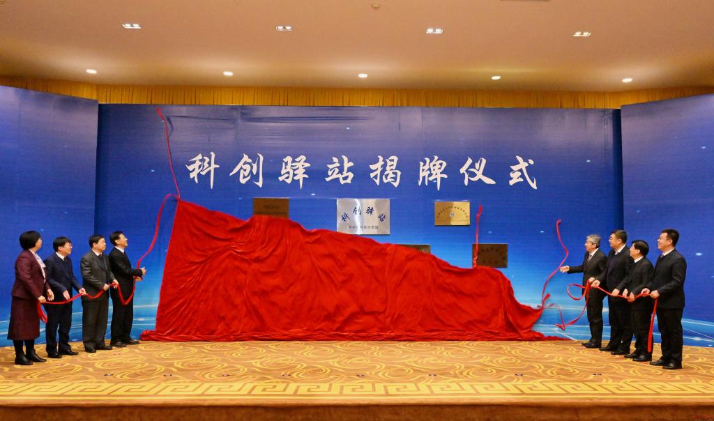 與會領(lǐng)導(dǎo)為“科創(chuàng)驛站”揭牌。馮曉磊 攝