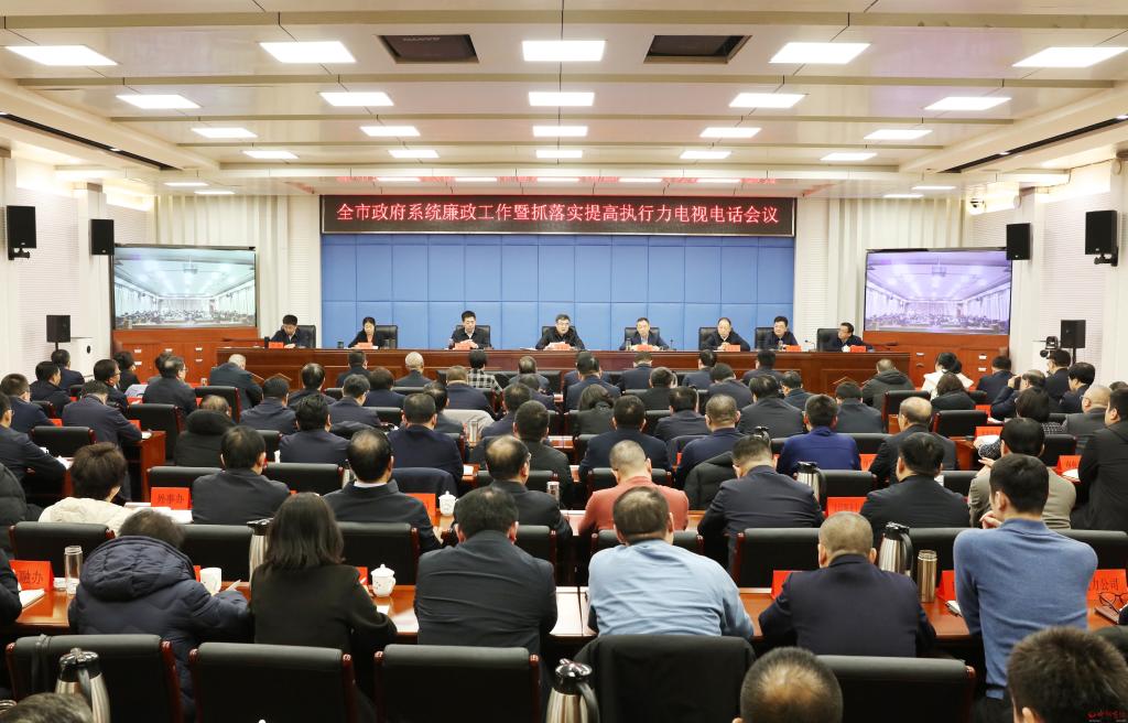 本報訊 (記者任逢春)2月22日,全市政府系統(tǒng)廉政工作暨抓落實提高執(zhí)行力會議召開,深入學習貫徹習近平總書記關于黨的自我革命的重要思想,全面貫徹黨中央國務院、省委省政府、省紀委和市委的系列會議安排,對縱深推進政府系統(tǒng)黨風廉政建設和反腐敗斗爭工作進行安排部署,號召全市政府系統(tǒng)振奮精神、擔當作為,全面提升重實干、強執(zhí)行、抓落實的實踐成效,不斷開創(chuàng)全市高質(zhì)量發(fā)展、全方位轉(zhuǎn)型和現(xiàn)代化建設新局面。市委副書記、市長李建國出席會議并講話。市委常委、常務副市長趙新年主持會議。市委常委、市紀委書記、市監(jiān)委代主任王建江,副市長史紅波、賈玲香、王建峰、李碩,市政府秘書長張艮生出席。