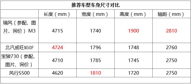 推薦車型車身尺寸對(duì)比