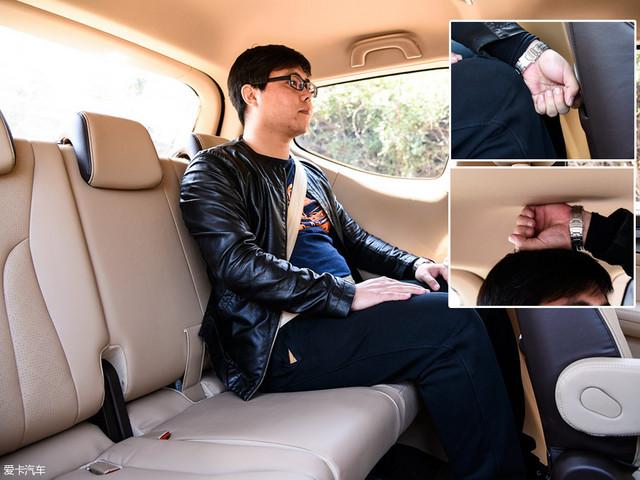 保持前排座椅不動,同一體驗者來到第二排,頭部空間同樣剩余一拳多,腿部空間也是一拳有余。