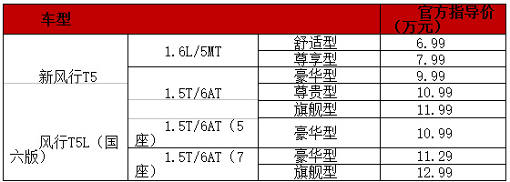8月18日,東風(fēng)風(fēng)行宣布面向全新市場(chǎng)定位的戰(zhàn)略車(chē)型——“加大號(hào)智惠5座SUV”新風(fēng)行T5正式上市。包括此前預(yù)售款型在內(nèi),新風(fēng)行T5共有1.5T/6AT/1.6L/5MT兩種動(dòng)力選擇、五款車(chē)型,售價(jià)從6.99萬(wàn)元到11.99萬(wàn)元,全面覆蓋入門(mén)級(jí)緊湊型SUV市場(chǎng)區(qū)間。同時(shí)上市的還有風(fēng)行T5L(國(guó)六版)的三款車(chē)型,分為5座版和7座版,動(dòng)力均為1.5T/6AT,售價(jià)從10.99萬(wàn)元到12.99萬(wàn)元。