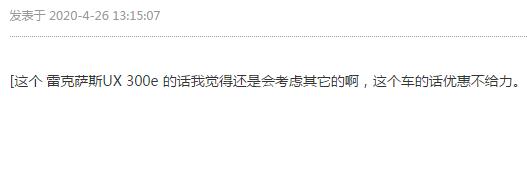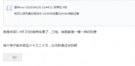 此外,雷克薩斯上月推出的首款純電車型UX300e,新車售價超出30萬元,根據(jù)補貼新政,今年7月22日后將無法享受新能源補貼。同時,從論壇上消費者的反應(yīng)來看,對其似乎也不:太看好,不禁讓人對雷克薩斯在華電動車“頭炮”能否打響產(chǎn)生擔憂。