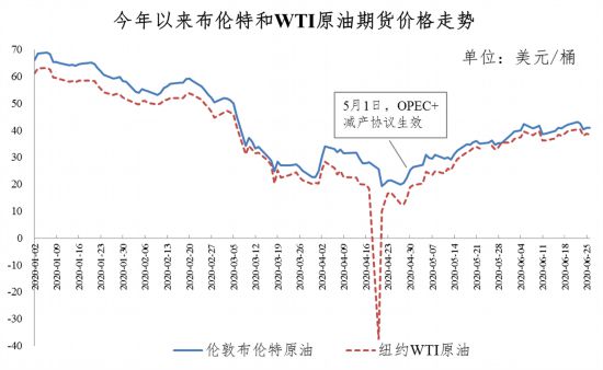 另一方面,根據(jù)減產(chǎn)協(xié)議,5—7月減產(chǎn)幅度為970萬桶/日。市場關(guān)心該組織減產(chǎn)執(zhí)行情況和7月中旬將召開的視頻會議,OPEC+將商討是否延長當(dāng)前減產(chǎn)幅度至8月份。此外,油價回升至每桶40美元上方,可能促使美國頁巖油再度增產(chǎn),各產(chǎn)油國矛盾將加劇。