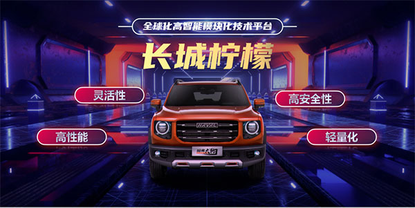 哈弗大狗,源于全球化、高智能、模塊化技術平臺——長城檸檬,它耗資200億研發(fā)打造,其靈活性、高性能、高安全性和輕量化,讓平臺車型的各項指標賦予更多可能。
