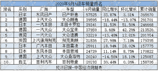 此外,卡羅拉9月銷售3.93萬(wàn)輛,同比增長(zhǎng)31.53%,環(huán)比增長(zhǎng)51.5%,排名躍升至第三位;雷凌和思域分別銷售2.59萬(wàn)輛和2.47萬(wàn)輛,同環(huán)比均實(shí)現(xiàn)上升,并分別位于榜單第七位和第八位。