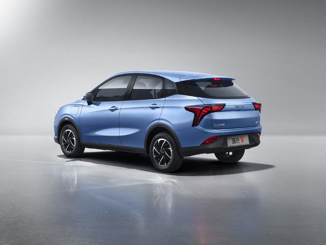 在外觀設(shè)計(jì)上,哪吒V整車外觀采用海豚流線低風(fēng)阻造型,下壓式的車頭設(shè)計(jì)、封閉式的前格柵,配合幾何波紋狀的下進(jìn)氣格柵。哪吒V車長4070mm,寬1690mm,高1540mm, 軸距2420mm。