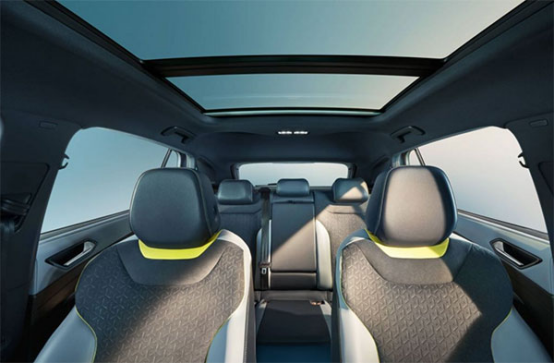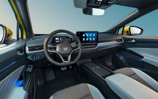 ID.4長寬高分別為4,592 mm x 1,852mm x 1,629 mm,軸距為2,765 mm。受益于MEB架構(gòu),ID.4車內(nèi)空間十分寬敞,全景玻璃車頂讓車內(nèi)更加通透。內(nèi)飾所運(yùn)用的色彩和材料極具現(xiàn)代感,懸浮式的儀表盤與中控臺采用獨(dú)立式的設(shè)計,體現(xiàn)出極簡風(fēng)格。另外,車輛還設(shè)有可自定義的30色背景氛圍燈,為內(nèi)飾增色不少。