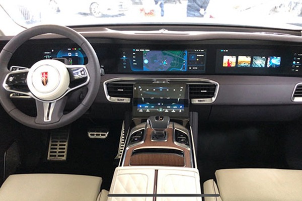 在內(nèi)飾部分,紅旗E-HS9的設(shè)計處處體現(xiàn)“中直尚雅”、“精工致作”、“山水意境”的東方美學(xué)。對稱式的布局與故宮的中軸線設(shè)計一本同源。全液晶儀表盤、中控多媒體觸控屏、副駕駛位眼睛顯示屏的三聯(lián)屏設(shè)計,再搭配中控中間的控制面板觸摸屏,擁有四塊可觸摸大屏幕讓整車的科技感十足。當然,在后排還有座椅屏和后排中央扶手大屏。七屏娛樂系統(tǒng)在體現(xiàn)出科技感的同時,也兼并了舒適與豪華。