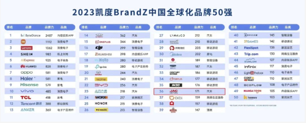 江淮汽車(chē)榮登BrandZ全球化品牌50強(qiáng)第36位