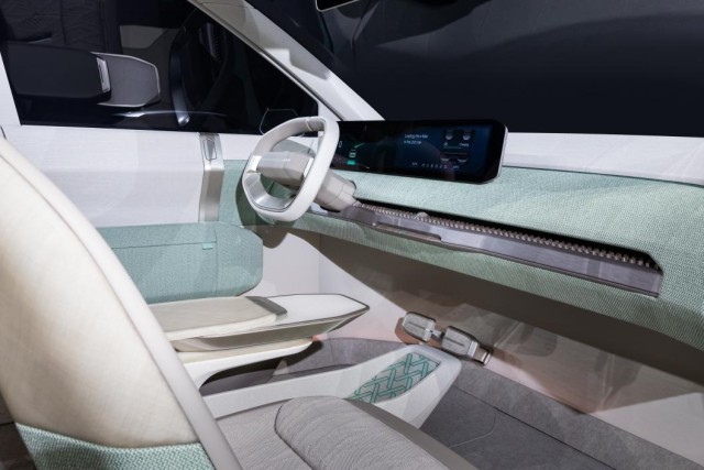 內(nèi)飾方面,起亞EV3概念車內(nèi)飾采用了簡(jiǎn)約的設(shè)計(jì)風(fēng)格,可以看到,該車內(nèi)飾并沒有配備多功能按鍵,雙輻式的方向盤搭配大尺寸連屏,以及懸浮式的座椅,更顯未來感。此外,在內(nèi)飾用料上,該車內(nèi)飾采用了大面積的織物包裹,座椅采用環(huán)保材料,座椅設(shè)計(jì)符合人體工程學(xué)原理。