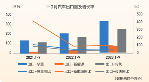 在國內市場快速增長的同時,新能源汽車也在持續(xù)推動出口市場的發(fā)展。9月,新能源汽車國內銷量80.8萬輛,環(huán)比增長6.9%,同比增長22.8%;新能源汽車出口9.6萬輛,環(huán)比增長6.5%,同比增長92.8%。1~9月,新能源汽車國內銷量545.3萬輛,同比增長30.5%;新能源汽車出口82.5萬輛,同比增長1.1倍。
