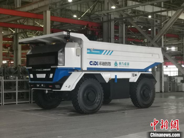 中國(guó)重汽集團(tuán)成都王牌商用車有限公司與希迪智駕共同打造的無(wú)人礦卡。(單鵬 攝)