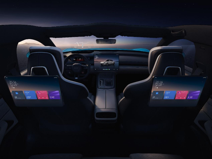 基于“以人為中心”的座艙交互架構以及小米澎湃OS操作系統的加持,小米SU7實現從硬件到軟件的全面共享生態(tài),進化成為移動智能空間。該座艙搭載16.1英寸3K分辨率中控生態(tài)屏,56英寸HUD,車規(guī)級7.1英寸翻轉式儀表屏,采用2塊原生車機系統的小米Pad后排拓展屏,匹配驍龍8295座艙芯片,AI算力30TOPS,五屏聯動,帶來極致流暢的人車交互體驗。