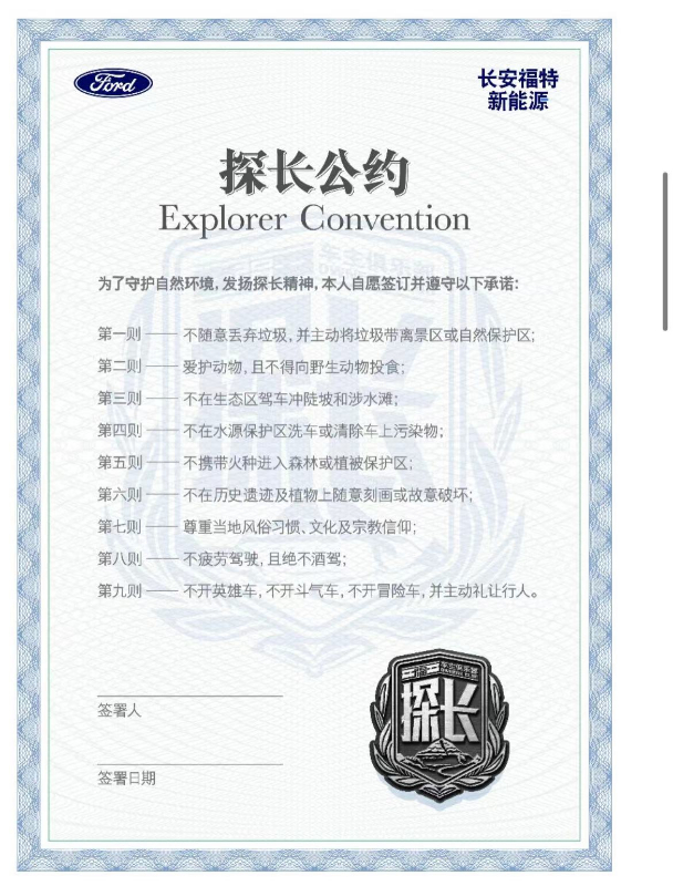 每一位支持踐行環(huán)保理念、熱衷公益的探險(xiǎn)者車主皆可簽署《福探長公約》,成為一名“福探長”。在“走四方、見遠(yuǎn)山”探索大美的同時(shí),心懷大愛踐行公益,書寫著屬于這個(gè)時(shí)代的探險(xiǎn)者精神新篇章。