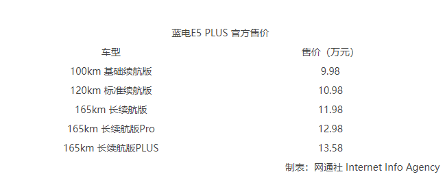 10月17日,藍(lán)電E5PLUS正式上市,新車共推出5款車型,售價(jià)區(qū)間為9.98萬(wàn)-13.58萬(wàn)元。新車定位中型插混SUV,并采用7座、5座兩種座椅布局可選,滿足家庭出行多場(chǎng)景需求。此外,新車入門車型純電續(xù)航達(dá)到了100km,以及165km同級(jí)最長(zhǎng)純電續(xù)航和1300km綜合續(xù)航。