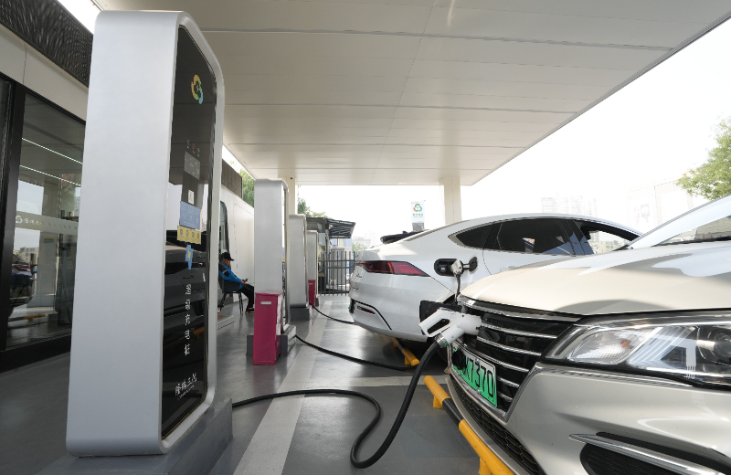 (資料照片)10月12日,在北京木樨園公交場站一座超級充電站內(nèi),新能源小客車在充電。新華社記者 鞠煥宗 攝