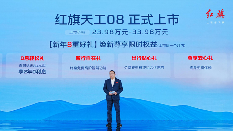 “旗創(chuàng)新高,天工逐耀”,1月7日,在長春一汽研發(fā)創(chuàng)新基地舉行的“燃動冰雪,見證‘相信’——紅旗天工08產(chǎn)品上市發(fā)布會”上,紅旗智造中大型豪華純電SUV天工08正式上市,以領(lǐng)先技術(shù)和卓越實(shí)力為用戶提供高品質(zhì)出行新選擇。回望2024年,一汽紅旗銷量突破40萬輛,以強(qiáng)勁增勢再攀歷史高峰。站在40萬銷量新起點(diǎn),天工08將以進(jìn)取之姿為2025年新征程踏出堅(jiān)實(shí)首步。