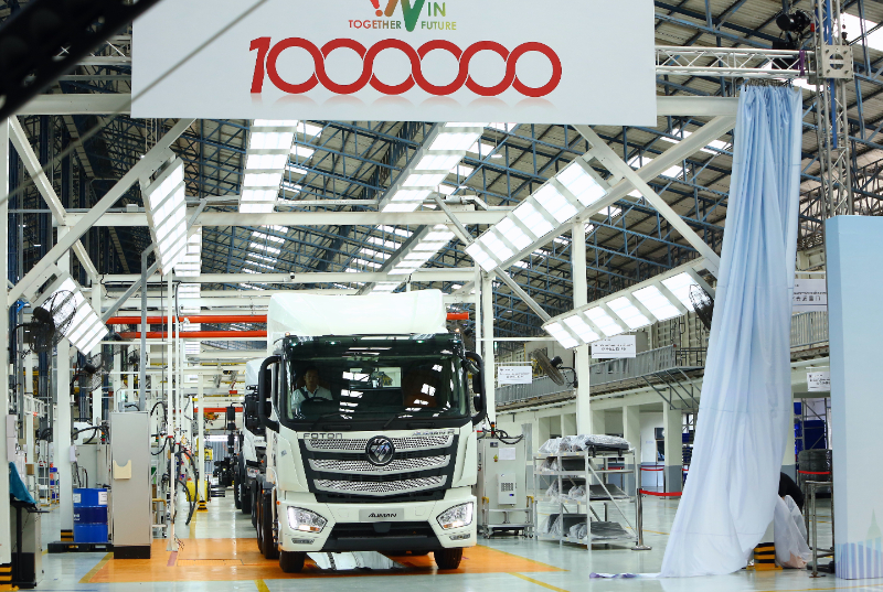 (資料圖片)這是2024年11月27日在泰國北欖府的北汽福田泰國工廠拍攝的北汽福田商用汽車在海外銷售第100萬輛車下線儀式現(xiàn)場。新華社記者 孫瑋彤 攝