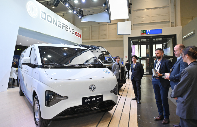 (資料圖片)2024年9月16日,在德國漢諾威國際交通運(yùn)輸博覽會(huì)媒體預(yù)展上,人們在東風(fēng)汽車展區(qū)參觀E-STAR V7商用車。新華社記者 任鵬飛 攝