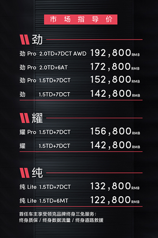 6月28日,領(lǐng)克02正式上市,售價(jià)區(qū)間為12.28-19.28萬(wàn)元,共計(jì)8款車型。同時(shí),所有購(gòu)買領(lǐng)克02的首任車主,都將享受到終身免費(fèi)質(zhì)保、終身免費(fèi)數(shù)據(jù)流量、終身免費(fèi)道路救援的三免服務(wù)。此外,領(lǐng)克01 PHEV也將于7月27日通過(guò)在線商城的方式對(duì)外銷售,共推出2款車型,補(bǔ)貼前預(yù)售價(jià)區(qū)間24-27萬(wàn)元。