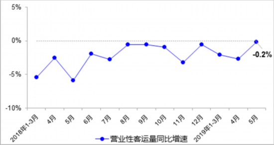 5月,完成營業(yè)性客運(yùn)量14.5億人,同比下降0.2%,降幅較4月收窄2.5個百分點,其中公路營業(yè)性客運(yùn)量下降4.2%、水路客運(yùn)量增長1.6%。