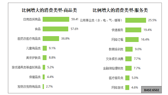 疫情期間線上消費(fèi)比例增大的消費(fèi)類型