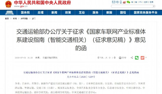 同日,交通運輸部公開發(fā)函,廣泛征求對《國家車聯(lián)網(wǎng)產(chǎn)業(yè)標準體系建設指南(智能交通相關)(征求意見稿)》(以下簡稱《征求意見稿》)的意見。其中,對進一步明確標準制修訂重點,以及形成統(tǒng)一、協(xié)調的國家車聯(lián)網(wǎng)產(chǎn)業(yè)標準體系架構作出部署。